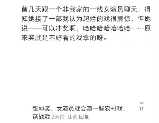 而随着《墨雨云间》火爆出圈,于正的口碑也有了大幅提升,就在大家觉得于正又行了的时候,其又出来“作妖”了,高调发文爆料某一线女星为了冲奖而接超级烂剧,不仅在与朋友聊天后火速将内容发在网上进行讨论,言词中还不忘嘲讽别人,人品再一次被群嘲。