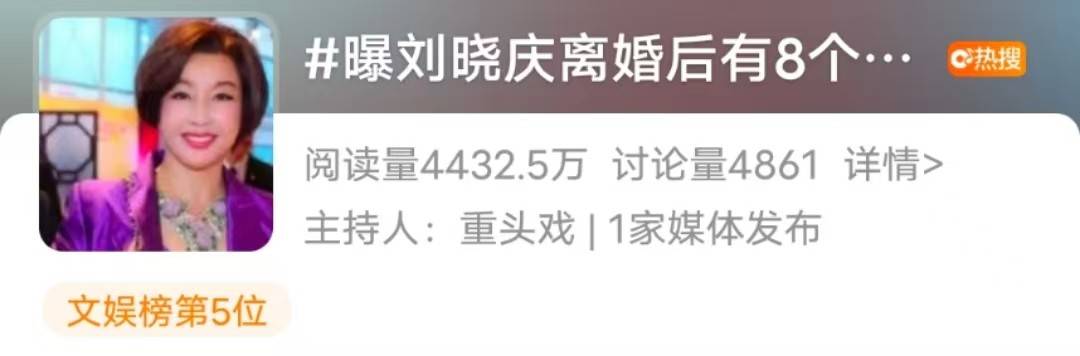 今天,娱乐圈惊现一个大瓜,即#曝刘晓庆离婚后有8个男友,此话题一出,瞬间顶上了热搜,引起了很多网友的围观。
