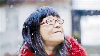 《摇摇晃晃的人间》纪录片中,余秀华摇摇晃晃地走在雪后的横店村。
