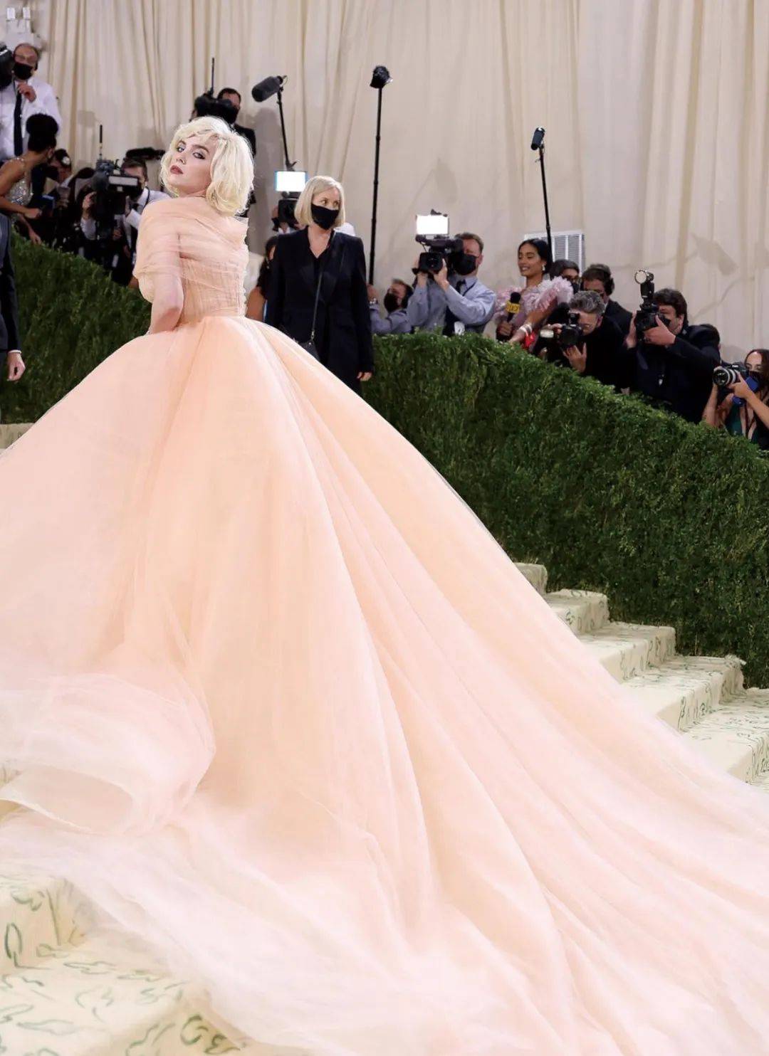 2021年,Billie Eilish身着Oscar de la Renta裸色薄纱连衣裙,首次参加时尚盛宴MET Gala,致敬以性感著称的好莱坞传奇女星玛丽莲· 梦露。