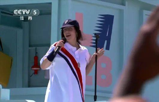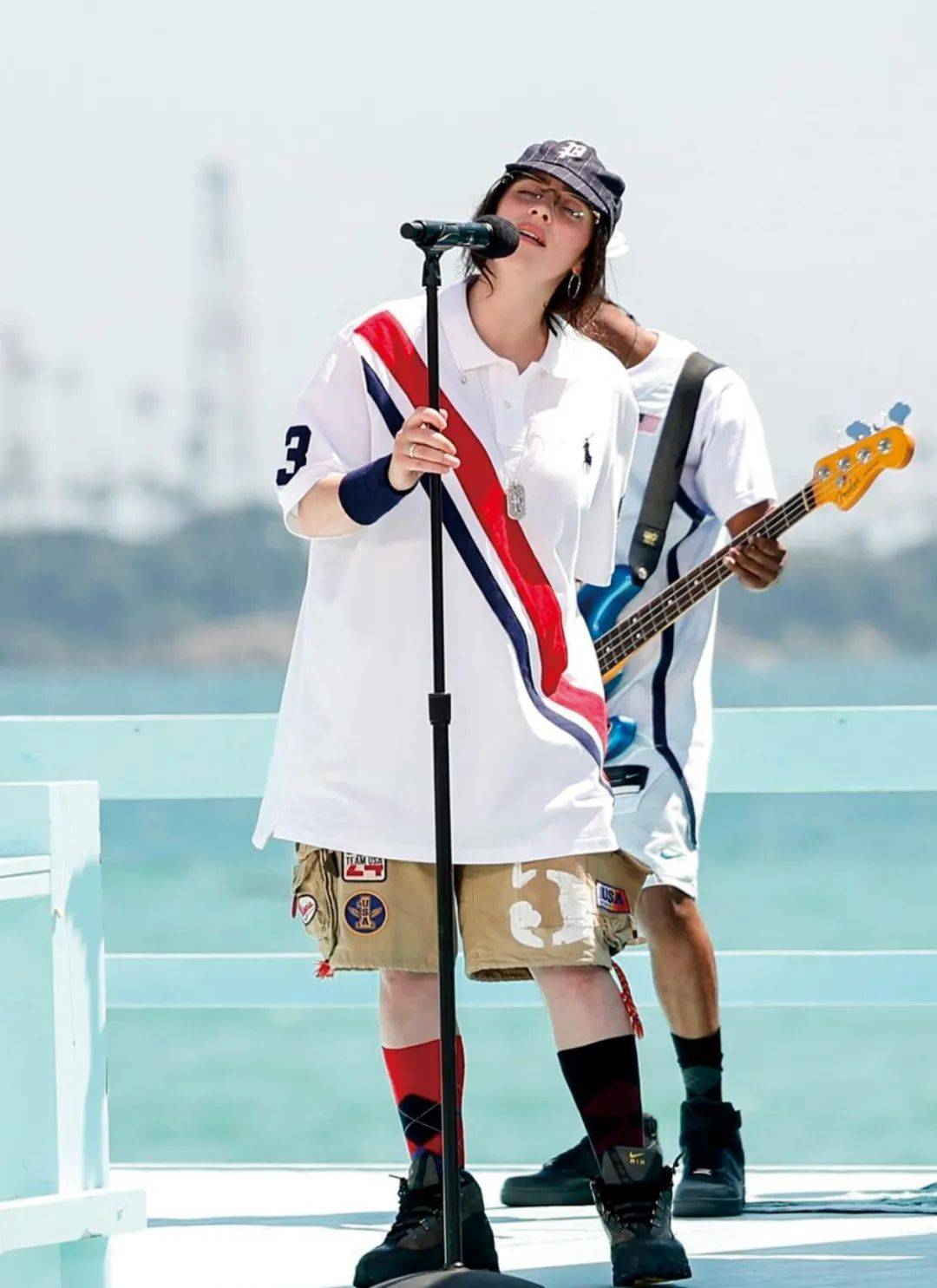 闭幕式上,她以标志性的American Tomboy风穿搭,诠释不服输的航海精神,与对故土举办奥运会的憧憬—印有美国国旗配色条纹的Ralph Lauren白色超大号Polo衫,搭配卡其色工装短裤和靴子,头戴海军蓝棒球帽,与神秘空灵的歌声形成鲜明对比。