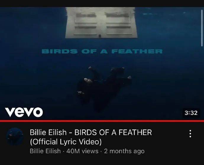 《BIRDS OF A FEATHER》虽然已经是全球性爆单了,但碧梨就是不怎么上心打单的事。目前只出了音源和歌词版MV,连个正经的MV都没有。不过简易PPT版的视频播放量也达到了400万的成就。