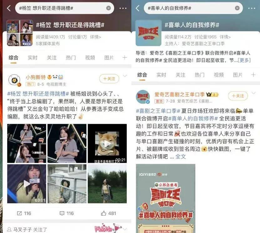 付航的“人生就是要充满passion”;小鹿的“结婚就是经历一场最大的诈骗”;杨笠被杨天真拉黑,杨笠“想升职还是得跳槽”等内容。