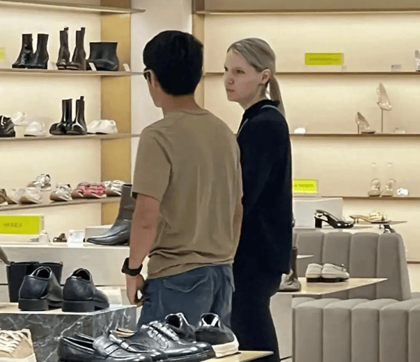 撒贝宁妻子李白一身黑衣,身材高挑出众。