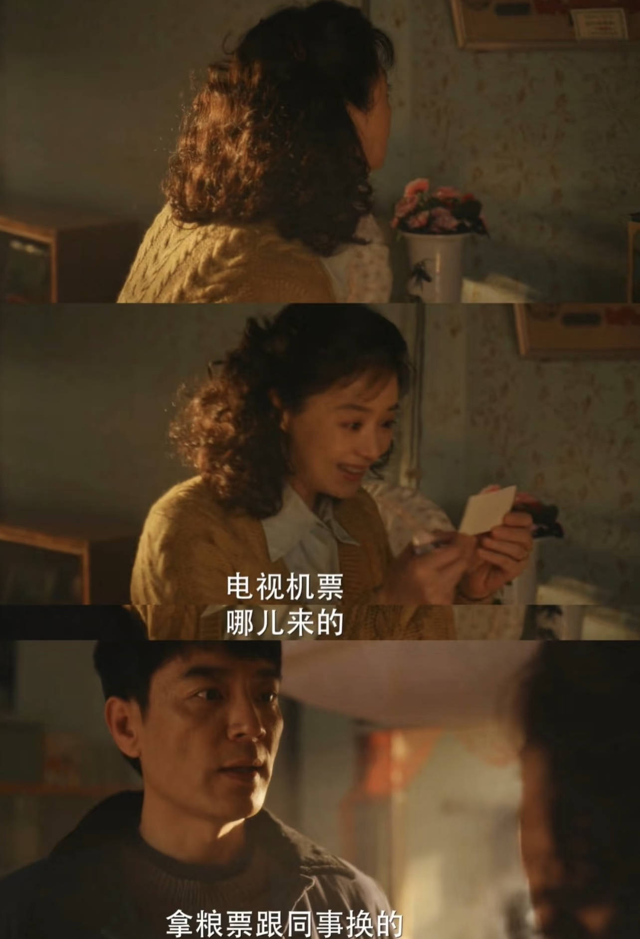 为了满足妻子的心愿,林武峰拿50斤粮票找同事换来了一张电视机票,宋莹知道后又开心又心疼,林武峰则表示:“你高兴是咱们家最大的事”,这才是教科书级别的哄人方式啊!