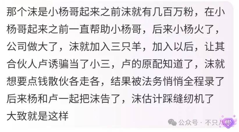 小杨哥遭辛巴隔空怒斥后,并未多做回应,反倒是三只羊公司联合创始人卢文庆坐不住了。
