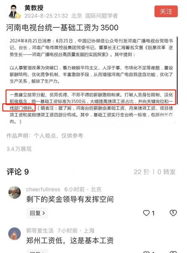 在这个娱乐至死的时代,河南卫视却以一种近乎“叛逆”的姿态,成为了内娱圈的一股清流。8月21日,一则震撼业界的消息如平地惊雷般炸响——河南电视台宣布,包括台长在内的全体员工,基础工资统一调整为3500元!