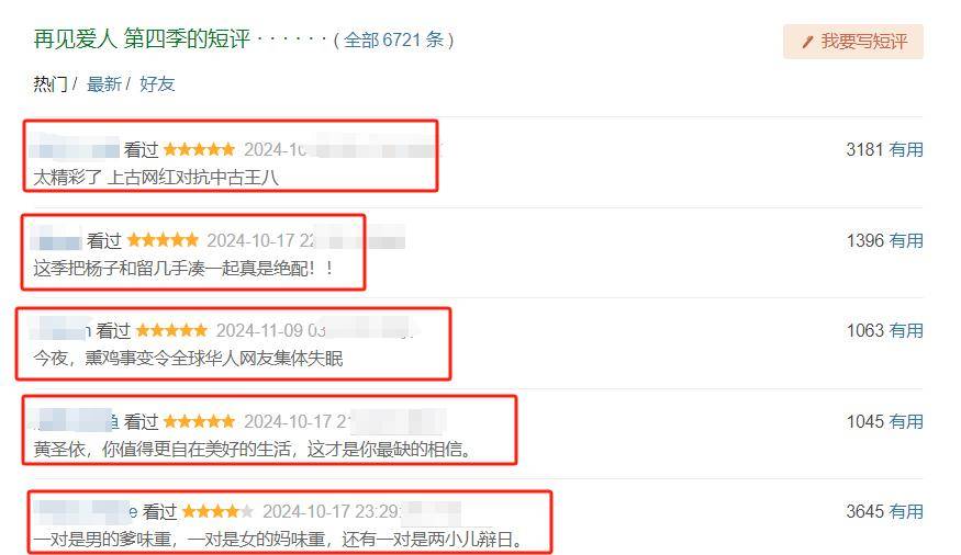 全季共14集的《再见爱人4》,无论是节目效果、细节、嘉宾往事、观察团金句……都已经被网友们“吃干抹净”。节目为各圈层观众提供满满的情绪价值和共情点。有人反感麦琳的“作”,同样有人同情麦琳为家庭自我牺牲。有人心疼李行亮在婚姻里被动,同样有人给他起外号“暗子”,质疑他的人品。前3期看扬子和黄圣依生气的观众,如今在嗑他们“腻歪”的小动作了。而留几手和葛夕的“似曾相识”反而让观众得以深呼吸。