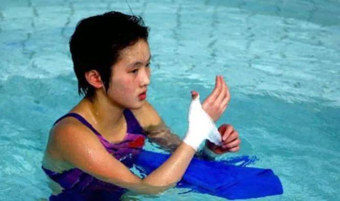 但对于只有5岁的小若琳来说,日常训练是非常辛苦的,她每天都要早起晨练,练到汗流浃背。刚接触跳水,她有一次腿磕到滑板上,整块皮都刮没了,但也没有退缩。外婆记得,有一次在训练场看到她跟其他小朋友做平板支撑,只有陈若琳保持挺拔的姿势一动不动,特别能吃苦。
