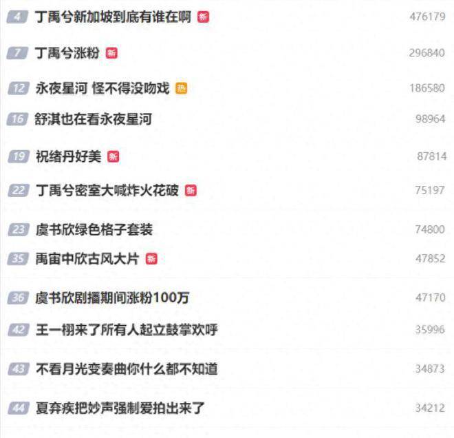 关于丁禹兮和虞书欣的词条随便一翻都是好几条。
