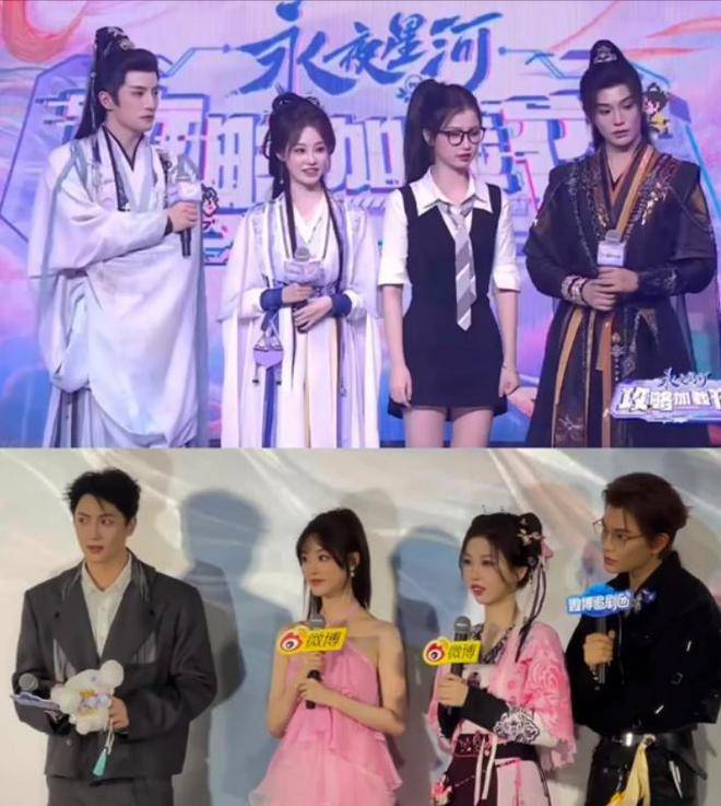 再看《永夜星河》剧组,宣发时四个人坐在一起有说有笑。