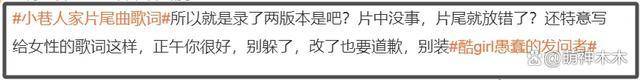 对于此事,部分网友猜测是歌手的责任,故意如此,还有情绪激动的网友直接跑到歌手的评论区内 " 兴师问罪 "。但有人认为这并非歌手本意,因为歌手的这首歌在各大平台都没有出现这个问题。而且,难道剧方不进行任何审核吗?随便任由工作人员进行更改?