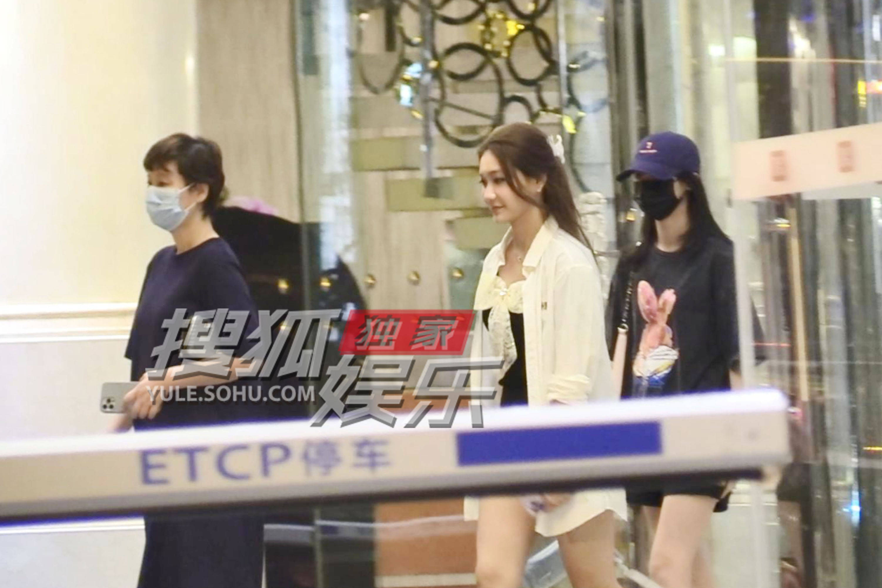 女儿徐朵跟在后面,几乎没怎么说话。她穿着卡通T恤上衣搭配短裤,露出纤细四肢,大长腿十分瞩目。