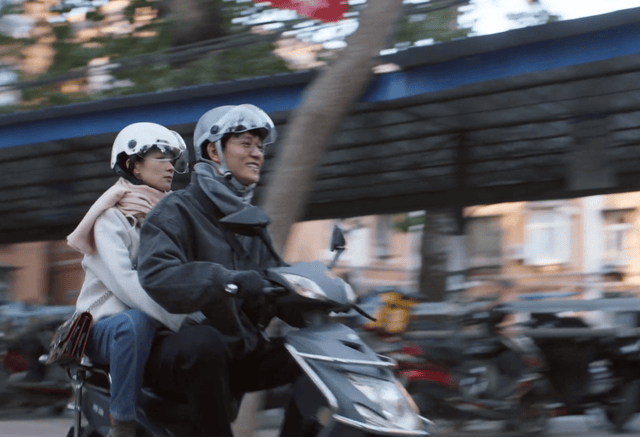 沈磊的肢体动作也有很多线索,在球场里赢得妻子的芳心,他初登场时的动作是利落的、干脆的,面对时常失灵的小电驴也会温柔的拍一拍。