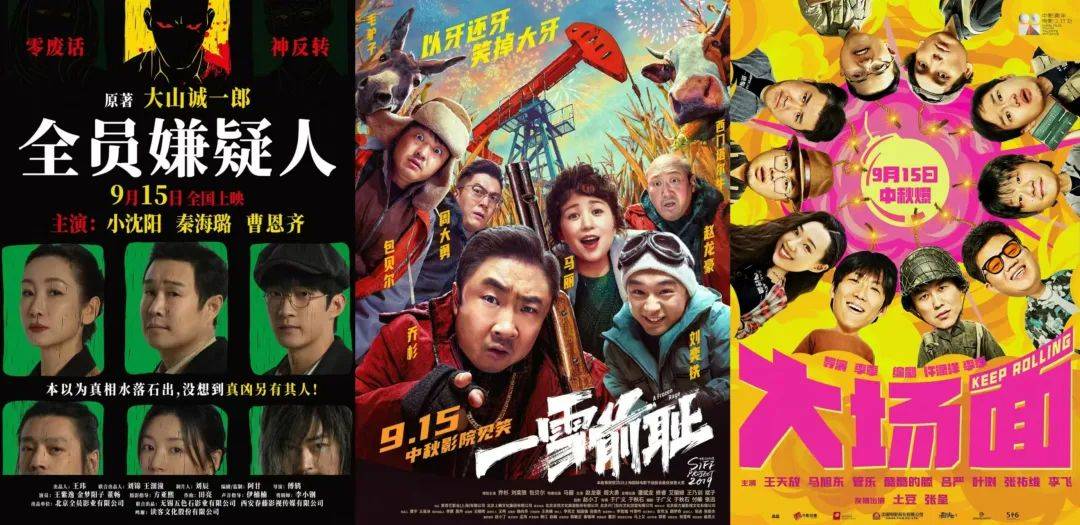 喜剧类型的比例同样不低:乔杉、马丽主演的《一雪前耻》是典型的东北喜剧;小沈阳和秦海璐主演的《全员嫌疑人》虽是推理电影,但也有轻喜剧元素;由《一年一度喜剧大赛》中十位“喜人”青年演员主演的《大场面》,同样将角逐中秋。