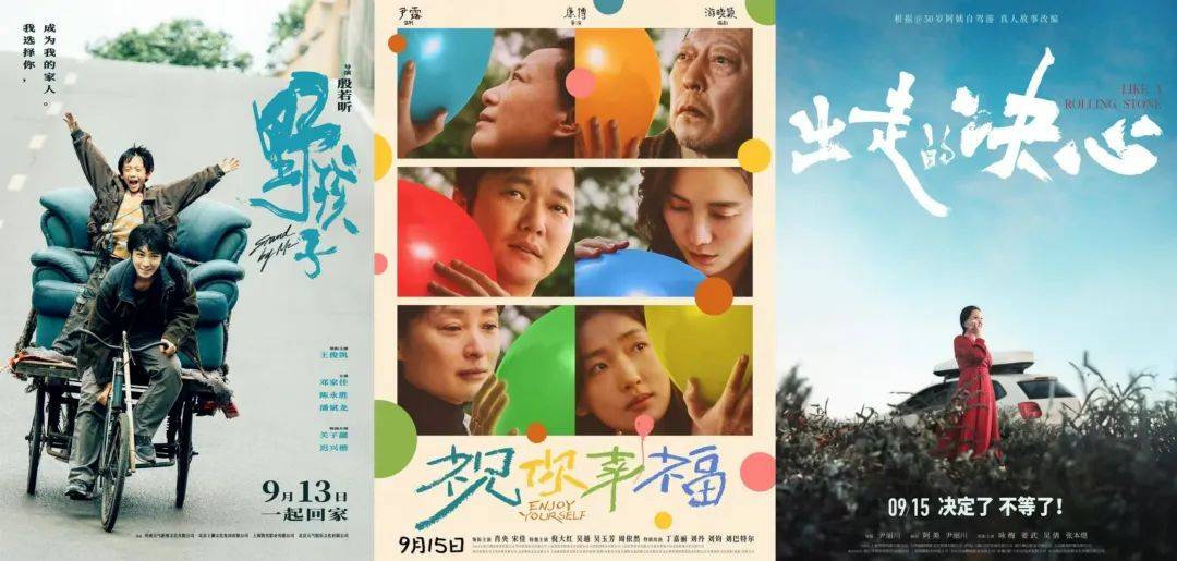 王俊凯领衔主演的流浪儿童题材新片《野孩子》,目前暂时领跑中秋档预售票房榜;肖央、宋佳、倪大红、吴越主演的《祝你幸福!》聚焦的是家庭和生育主题;改编自“50岁阿姨自驾游”真实经历的《出走的决心》,则是主打“为自己而活”的女性主义作品。