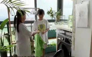 翁女士看到哥哥在院子中准备晾晒衣服时,因为够不到晾衣绳,只能无助地站在原地呼喊妹妹。小女孩听到后,快速地跑过来,从院子一角拖出小板凳,轻快地踩到上面,接过哥哥手中的衣服熟练地挂上去。