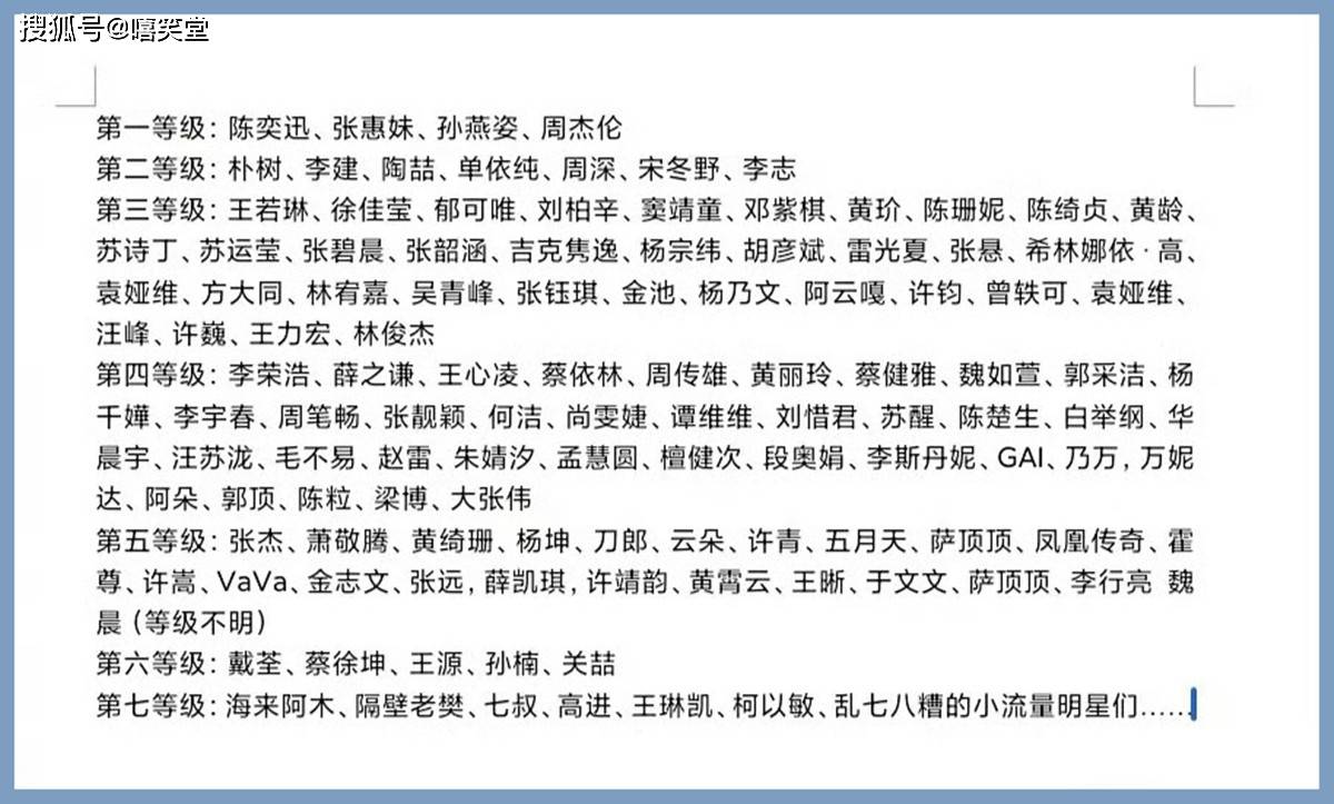 第一等级:张惠妹、陈奕迅、孙燕姿、周杰伦等