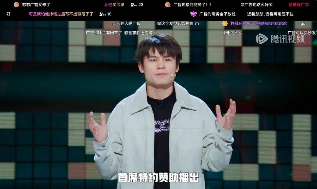 同样的逻辑,《脱友》最新的第四期则找了何广智做片尾的商务口播,当期广智以一段他最为擅长的道尽小人物装富心态的《逛家具城》高票炸场,片尾他的惊喜出镜赢得了观众一致好评,赞助品牌们也借势好好营销了一把。
