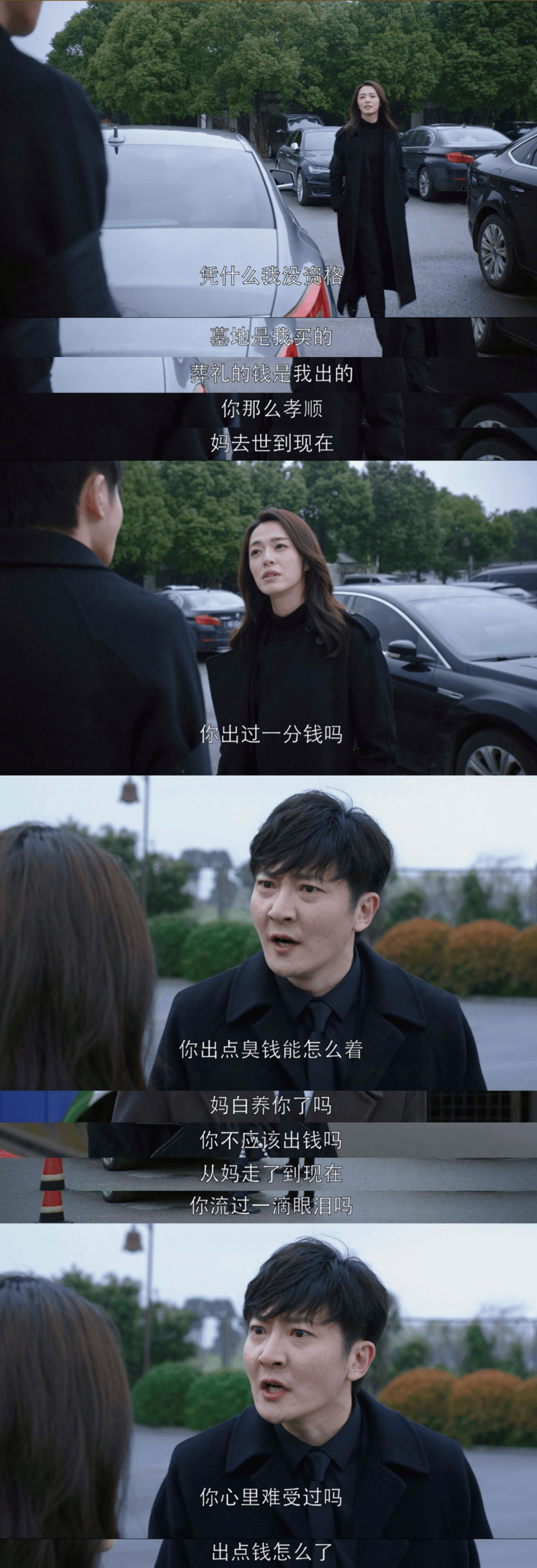 《都挺好》第一集,苏明成和苏明玉在母亲葬礼上一言不合便恶语相向,苏母骨灰盒摔在地上的镜头紧跟着的是一车人的惊讶表情,接着便引出了苏母多年来重男轻女所导致的兄妹矛盾;