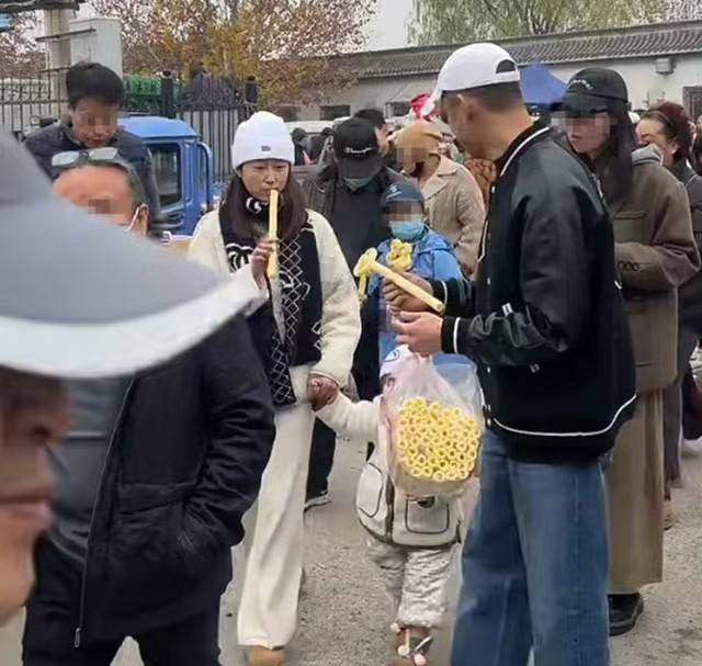在北京顺义赶大集时,王彦霖和老婆孩子在人群中边走边吃,手里拿着玉米棒,这是很多人的童年回忆。