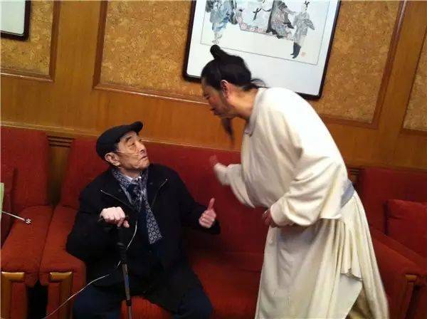 父亲的声音特别洪亮,在舞台上演戏也是满宫满调地说台词。后来他年纪大了,还患有肺气肿,可他一开腔,仍旧是胸腹式呼吸发声法,声音永远特别大,但是说不了几句就没气儿了。记者到家里采访一般都不能超过十分钟,不然他肯定顶不住,他就不会小声说话,而且心脏也不好。父亲是一个不惜力的人,永远努力工作。我到现在还记得他当年批评我,说你们这代人,给你们十个条件,缺一个,你们就可以不干。我们那时,九个条件都没有,只给一个条件,我们都要上。
