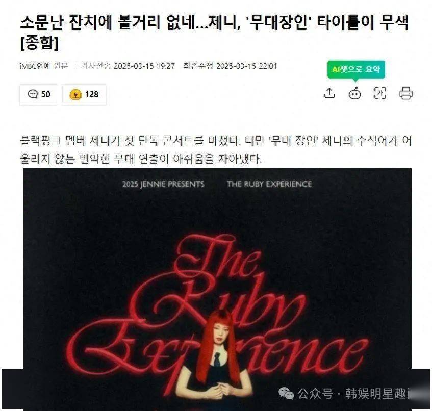 大家好呀,这里是你们的小娱~今天咱们来聊聊BLACKPINK成员JENNIE的首场韩国个人演唱会“The Ruby Experience”!作为“舞台匠人”的JENNIE,这次的表现却让不少粉丝大呼失望,甚至有人说:“传闻中的盛宴,结果没看点?”到底怎么回事?快来和小娱一起看看吧!