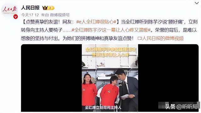 而全红婵自然也是很关心自己的这个队友姐姐,在知道对方腰痛时,马上申请可以坐下来的机会,这样的情谊,真是让人羡慕。