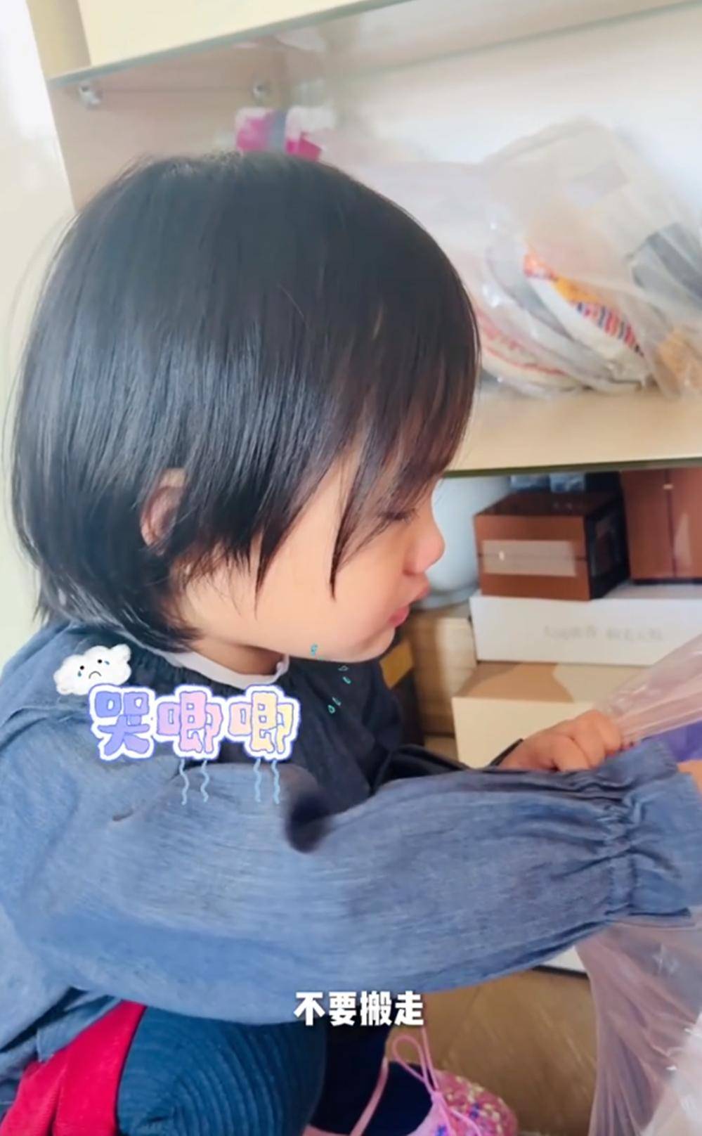 小女孩她一边收拾一遍抹眼泪,嘴里还念叨着跟自己的家告别,泪眼婆娑的样子真是惹人怜爱。