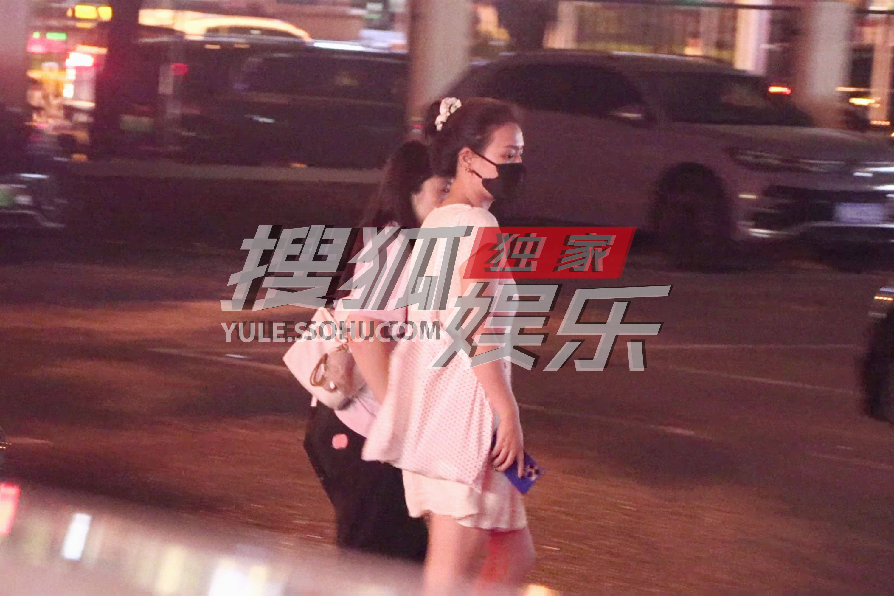 饭后,马思纯与朋友一路漫步至停车场,边走边聊。