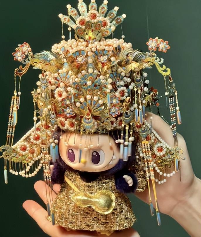 镶金带钻,满口富贵的Labubu则是有了千金气质。