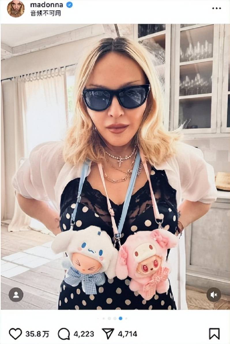 美国天后麦当娜,在母亲节那天更新了动态,不仅晒出了与女儿们的欢乐照,还秀了自己收到的Labubu。