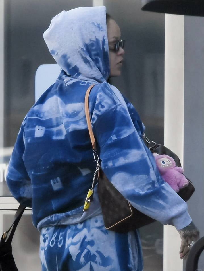 比如:外国的歌唱天后Rihanna,今年2月现身机场时,一身蓝白相间的休闲装打扮,背着一个LV包,而包上挂着的便是一只粉色马卡龙Labubu,妥妥的少女心啊。