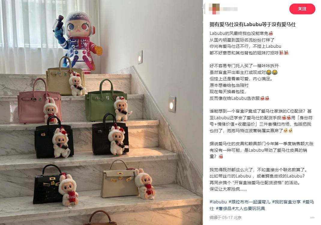 甚至有人直言表示,拥有爱马仕没有Labubu,就等于没有爱马仕。