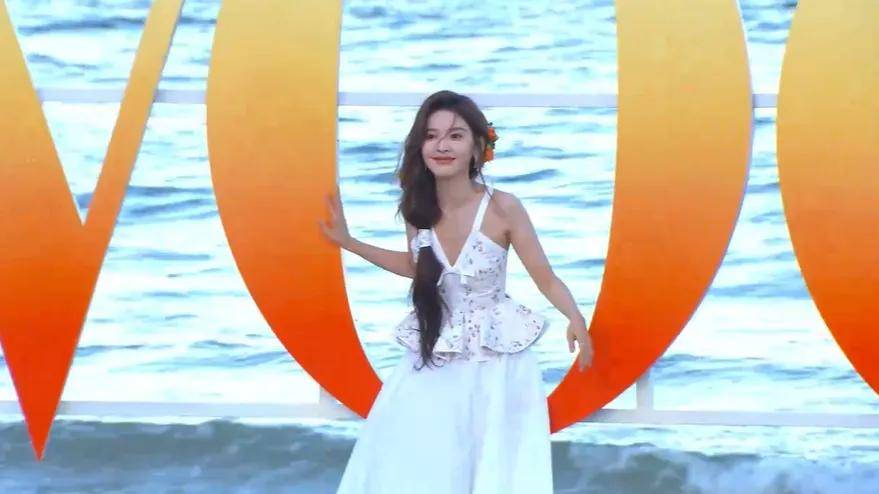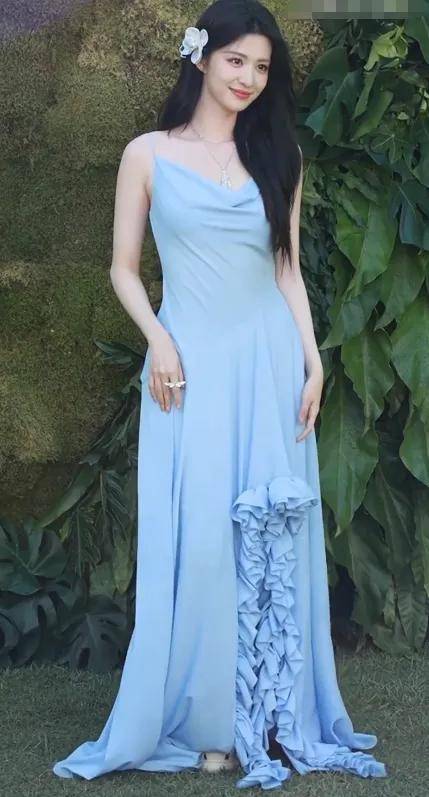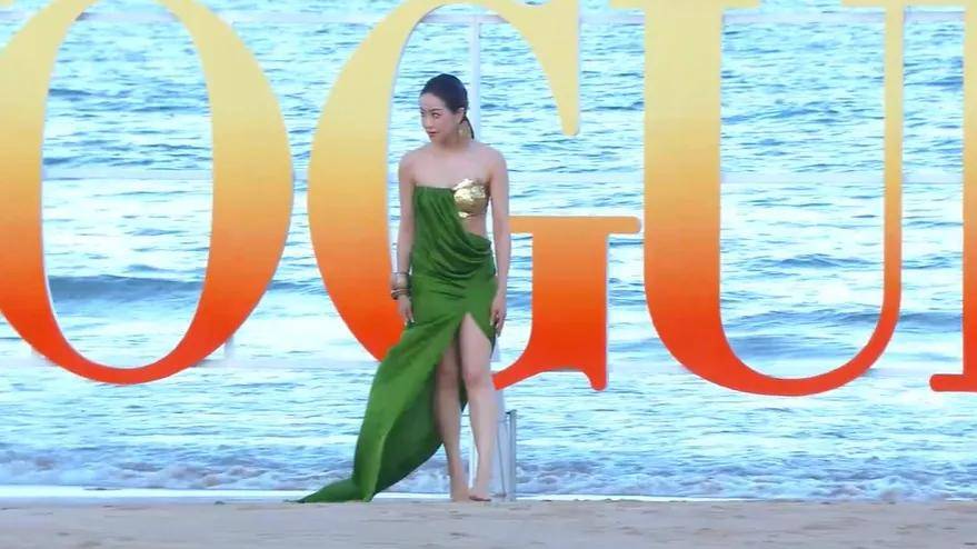 宋茜这是穿了个啥?感觉像是来走正经红毯的,不像是来走海边主题红毯的,礼服的设计好不适合海边,开叉是真的大,被风一吹也挺尴尬。