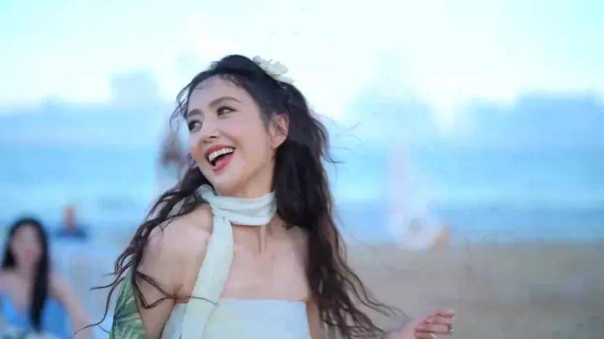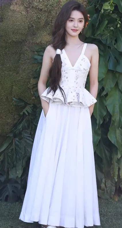 章若楠的美是清冷又带了点疏离感,有种海边散步的忧郁风,其实章若楠的颜值还是很甜的,但她这次的吊带裙不太有度假的感觉吧。