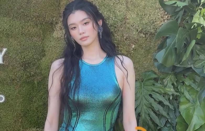 奚梦瑶这一身装扮,真的好像是美人鱼刚从海里出来,蓝色的礼服紧致修身,还闪亮亮的,整个人看起来好有气质,欧美妆和她也很搭,感觉是很有创意的一套造型了。
