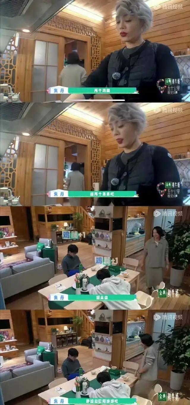 接下来的“桃花坞”节目里,朱丹又在鸡汤分配中引发了争议。当宁静炖好鸡汤时,朱丹率先分配:“两个鸡腿给弟弟吃,翅尖给宁静和欧阳娣娣吃。”宁静听了,微微皱眉,“小时候也是,重视的人就吃鸡腿。”