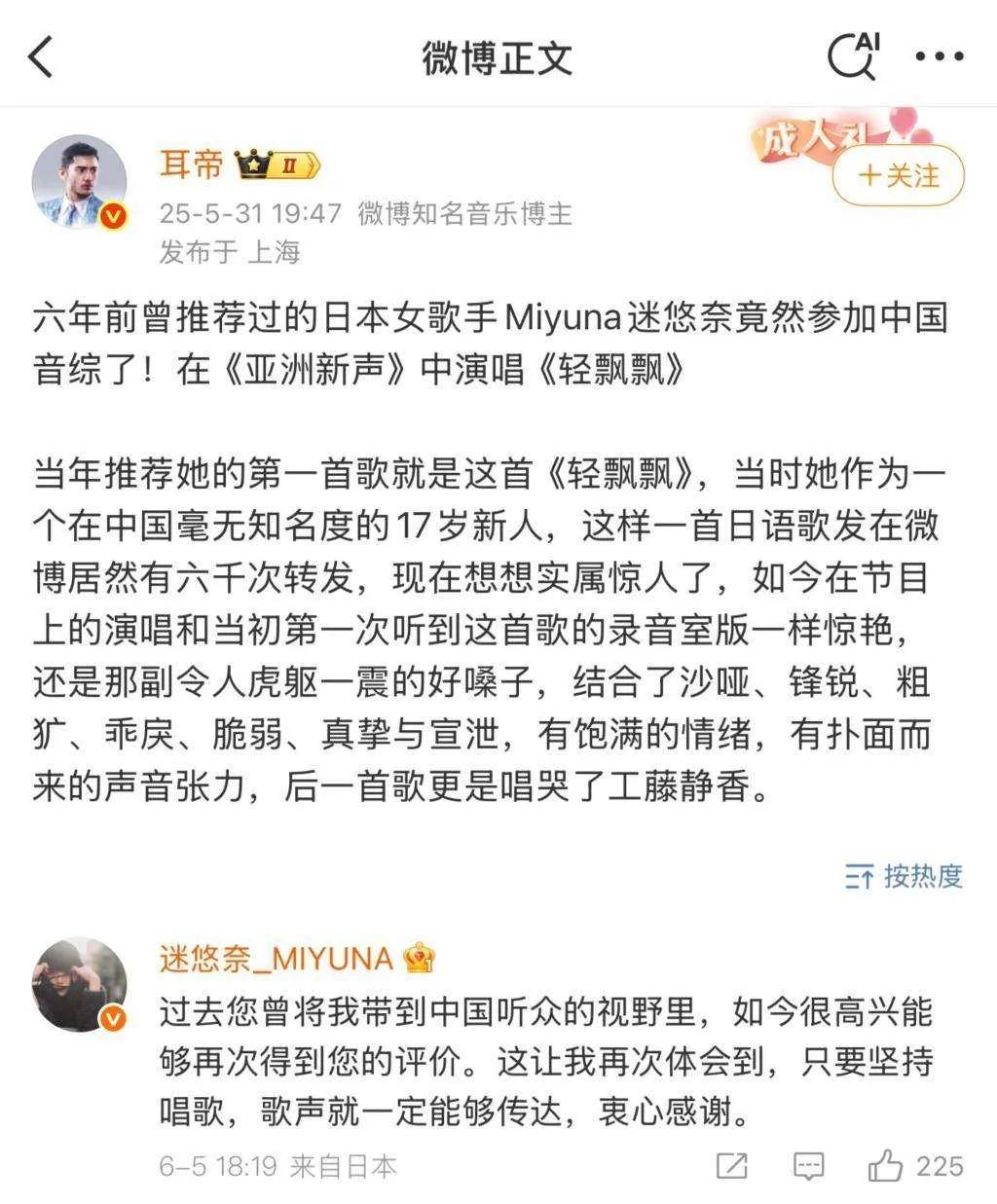 第一期的歌王,就是来自马来西亚的歌手阿木沙,他被称为“马来西亚最神秘的天籁歌者”,在海外社交平台上拥有诸多粉丝;第二期的歌王迷悠奈,则是早在2019年就被乐评人耳帝在微博买股的日本创作型天才少女,16岁就发表第一首原创单曲,17岁登上亚洲最大的摇滚音乐节,拥有极具爆发力的声音和超出年龄的沉稳台风。