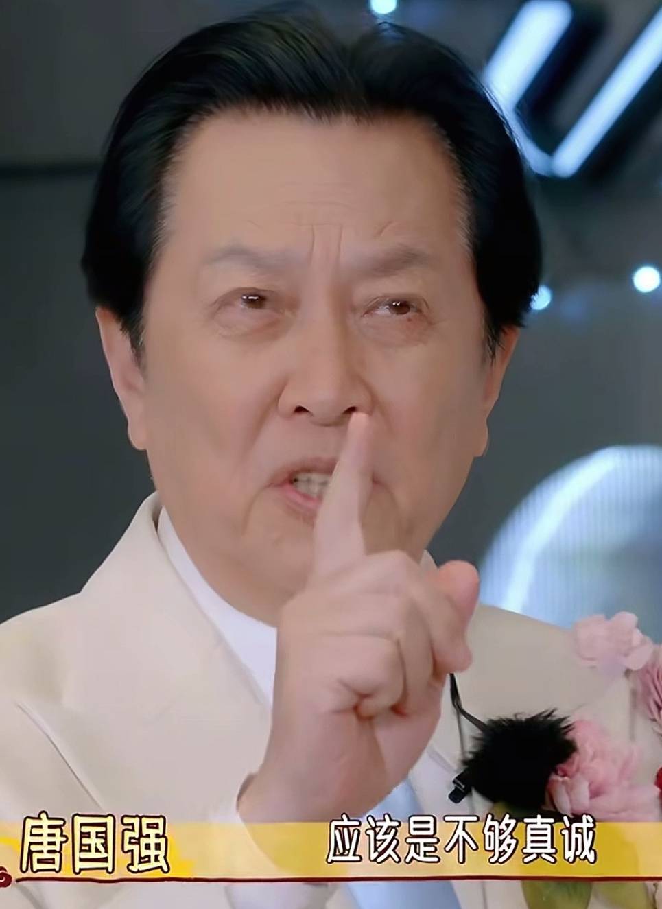 无论是游戏环节,还是互动交流,他总是展现出老艺术家的从容与淡定。比如,当唐国强被问到看到一对情侣亲吻的反应时,他直言不讳地评论“不真诚”,这种突如其来的直白回答,既出乎意料又增添了不少节目的趣味性。
