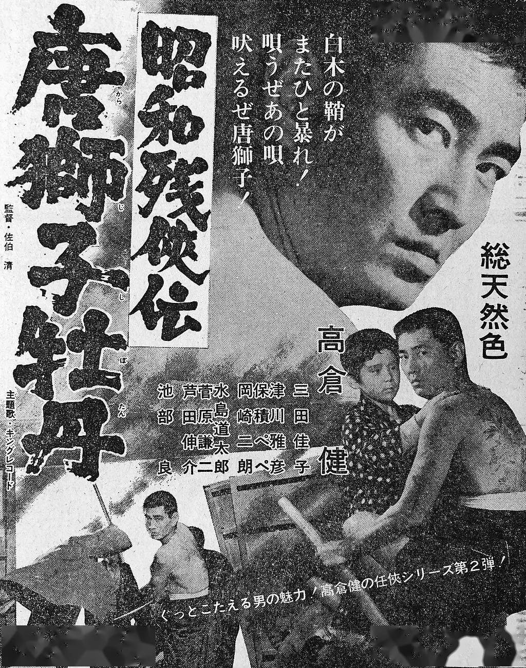 阿健指的是高仓健,他也是东映的影星。他在1960年代演过阿锦的对手—一个成天傻笑的武士,后来则专演黑社会一类的角色,一下子大受欢迎。他给人的印象是整天穿着和服,绷着脸,像一头禁欲的独狼。1960年代后期全世界发生政治动乱时,他对日本的新左翼学生来说是最伟大的英雄。后来黑道电影衰落,他开始改演拥有黑暗过去的孤独中年男子,并凭借松竹的爱情剧成了人气影星。