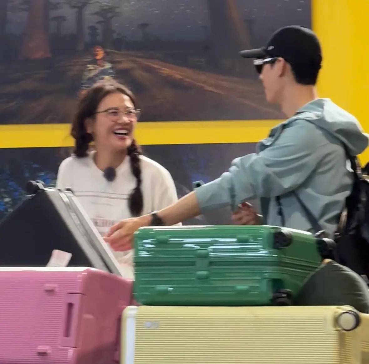 高大的龚俊在人群中格外显眼,与他同行让人倍感安全感。他忙于打电话,尽显照顾团队姐姐们的责任,搬运行李时的贴心举动更是让马思纯忍不住赞叹。
