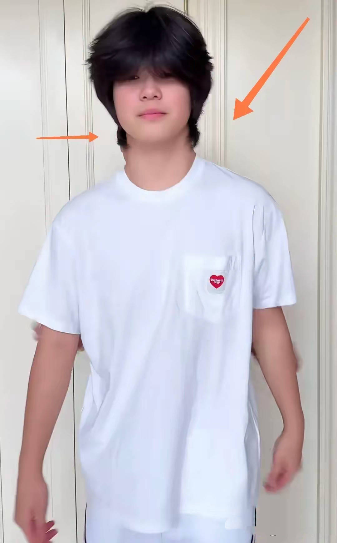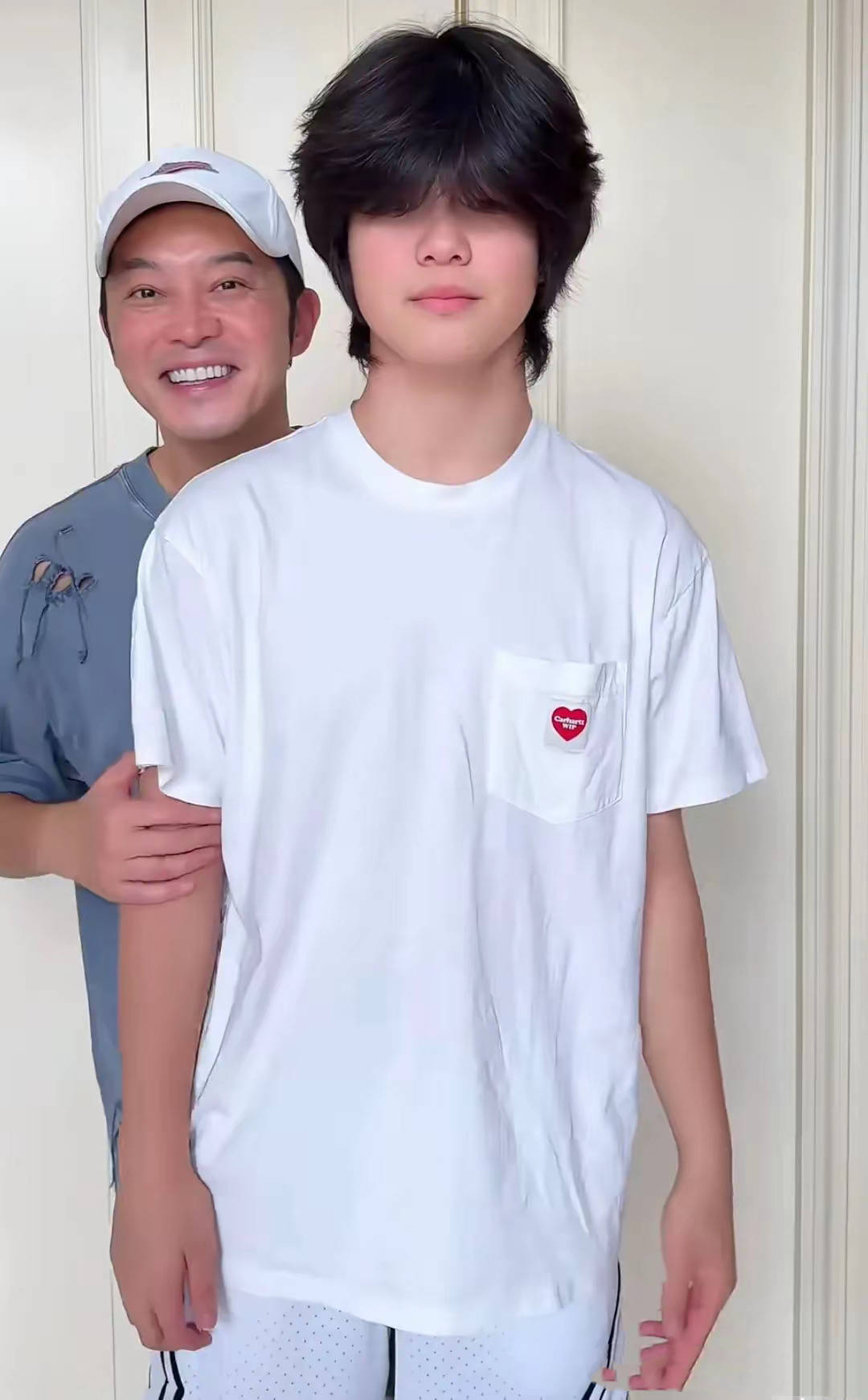 接着就是大儿子安吉站在沙溢的前面,这对比足够明显了。因为安吉已经完完全全的挡住了自己的老父亲沙溢。