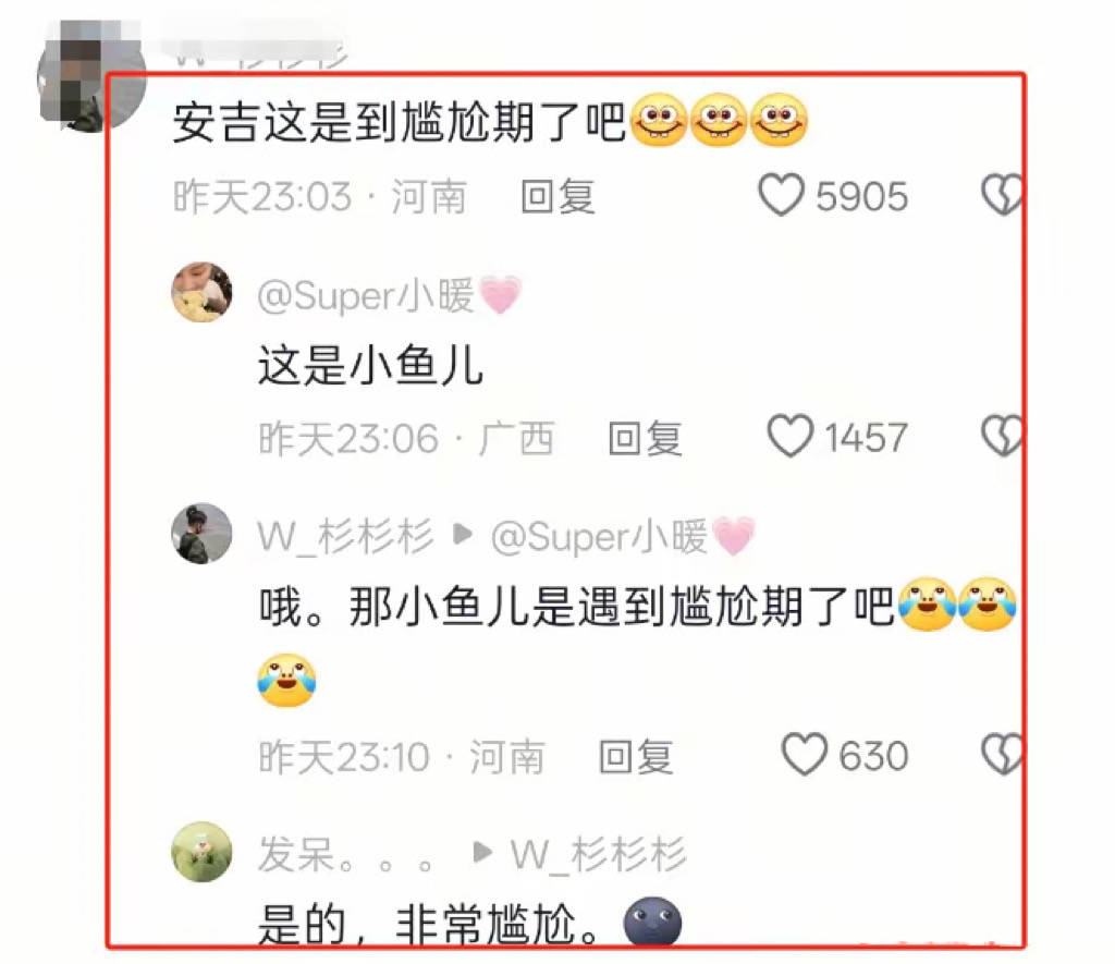 当然网友对孩子们非常喜欢,还是特别包容的。都知道小鱼儿这是到了尴尬期,所以对于他的容貌并没有过多的讨论。