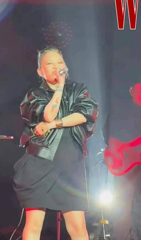 去年萧敬腾的婚礼上,她顶着一头绿发现身,在台上深情演唱《眼泪》。台下的宾客可能看不懂她的造型,但都被她的歌声感动了。