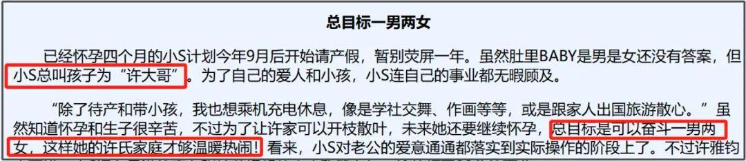 奉子成婚之后,小S虽然嘴上说着生一男二女就好,但对着自己的第一胎就喊“许大哥”。