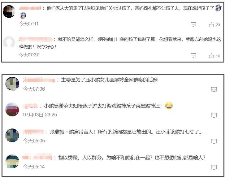 绝大部分网友都站在汪小菲和马筱梅这边,且不提大S子女电子产品成瘾严重,去黑范家就会玩游戏,就说黑范家的家风,一个总被质疑撒谎一个涉嫌骚扰女性,但凡对孩子有点责任心,不让去都不意外。