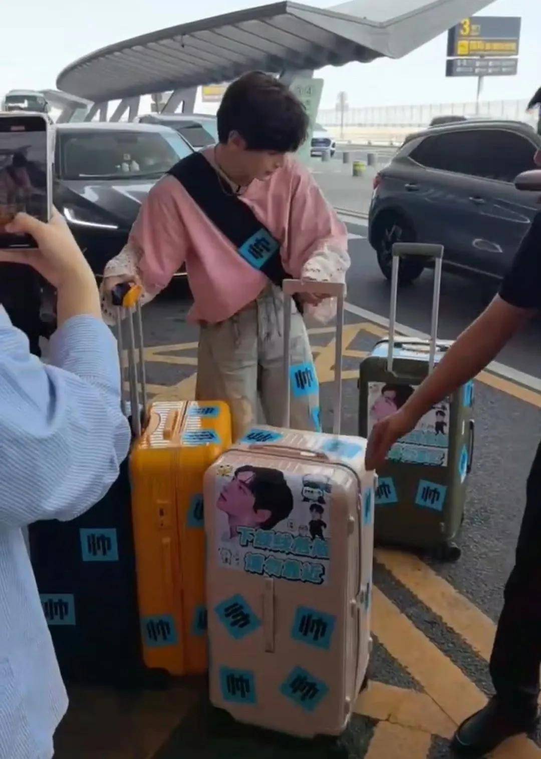 带的行李真不少,每个行李箱上面还精心布置过,恨不得把“帅”写在脸上。