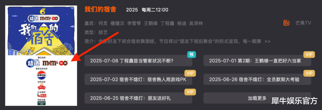 综艺IP的衍生开发已经成为芒果综艺的一项杀手锏。《我们的宿舍》凭借“低成本、高收益”的特性,在市场上创造了可观的经济效益。六大品牌的金主联手,也证明了“综N代衍生团综”的开发模式,特别是已经积累了一定观众基础的艺人和节目,通过衍生节目可以迅速打入市场,获得回报。