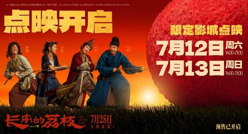 电影《长安的荔枝》讲述了唐代小吏挑战不可能,千里送荔枝的故事。全新发布的点映开启图宣告影片将于7月12日-13日限时点映,李善德(大鹏 饰)、苏谅(白客 饰)、阿僮(庄达菲 饰)、林邑奴(刘俊谦 饰)组成的“荔枝小队”使尽浑身解数,与巨型荔枝展开一场激烈又充满喜感的“拉荔赛”,将荔枝转运的艰难具象化。他们能否干成这件大事?大家还不赶快购票“鲜”睹为快!同期发布的有“笑”接单版特辑进一步展现出影片的喜剧特质。大鹏透露,在开机第一天,他演绎的李善德一脸“苦”样,俨然是鱼朝恩(常远 饰)和刘署令(王迅 饰)“随便找个老实人坑”的最佳人选。白客饰演的苏谅不仅是“财富担当”,更与李善德“情意相通”,两人逗趣的相处模式从戏里延续到戏外。庄达菲笑称阿僮是岭南荔枝“供应商”,并因为颠覆性的造型,跟刘俊谦一起调侃等到路演时“我们俩互相都应该认不出来”。相比“荔枝小队”的欢乐,王迅饰演的刘署令、孙阳饰演的赵辛民则没少给李善德下绊子,两位演员在特辑中坦言“把李善德害苦了”,但也由此制造出诸多有趣的戏剧冲突。而林雪的造型、宋小宝的摊位、付航的激情、以及张若昀的巴掌,也都令人捧腹。此外,大量喜剧人的惊喜亮相也带来不少笑点——饰演牙人的刘旸展露售楼经理式的职业微笑;饰演招福寺典座的金广发戏里笑而不语,戏外跟大鹏纵情飙歌;闫佩伦饰演的租驴老板一针见血吐槽李善德的“预算”;罗圣灯、苗若芃饰演的香蕉园兄弟载歌载舞,成为精神状态极度松弛的“释放组”。演员们充分调动自身喜感,让每个角色都生动有趣。